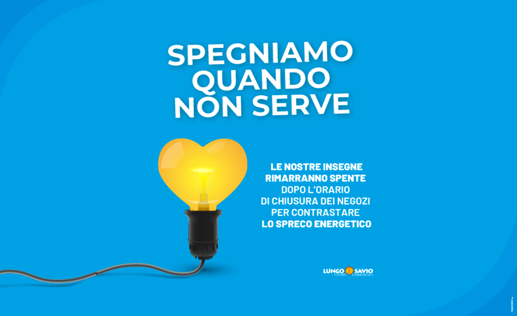 Il Lungo Savio decide di spegnere le luci quando non serve! 💡 Le nostre insegne rimarranno spente dopo l’orario di chiusura dei negozi per contrastare lo spreco energetico.