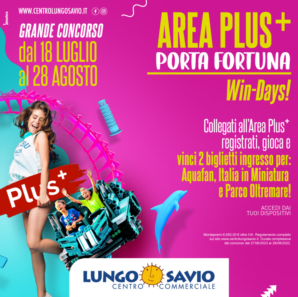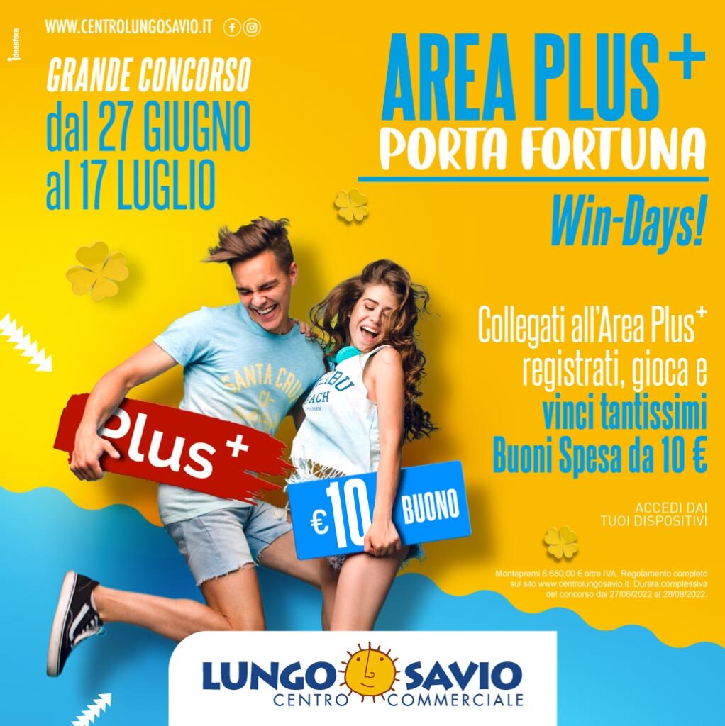 Entra nella tua Area Plus per vincere fantastici buoni spesa per il tuo shopping al Centro Commerciale Lungo Savio! Puoi giocare tutti i giorni fino al 17 luglio! Ti aspettiamo!