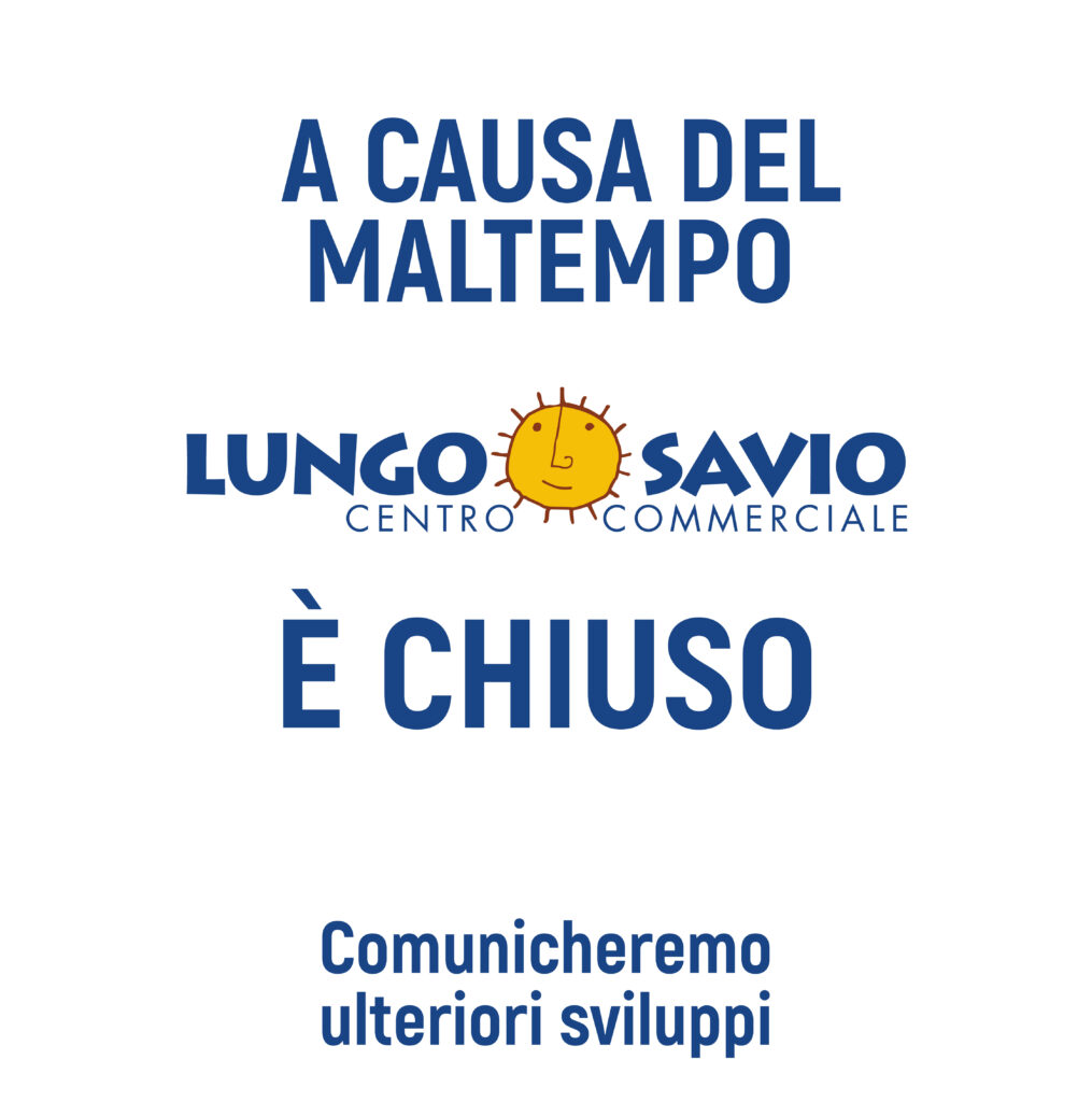 ⛔IL CENTRO COMMERCIALE LUNGOSAVIO E’ CHIUSO⛔ Sarà nostra premura aggiornarvi non appena ci saranno sviluppi. Siamo vicini con il pensiero e con il cuore a tutta la popolazione colpita dal maltempo.
